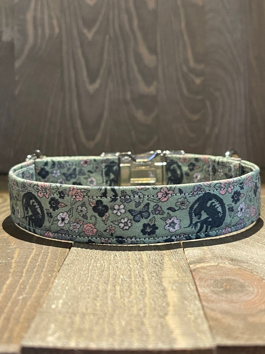 Alien Inspired Green Floral Fabric Wrapped Dog Collar