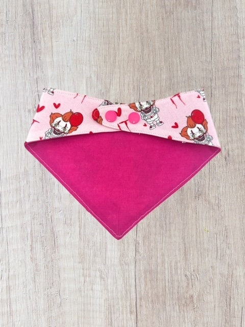 Pink Pennywise, Valentines Day pet Bandana with snap closure