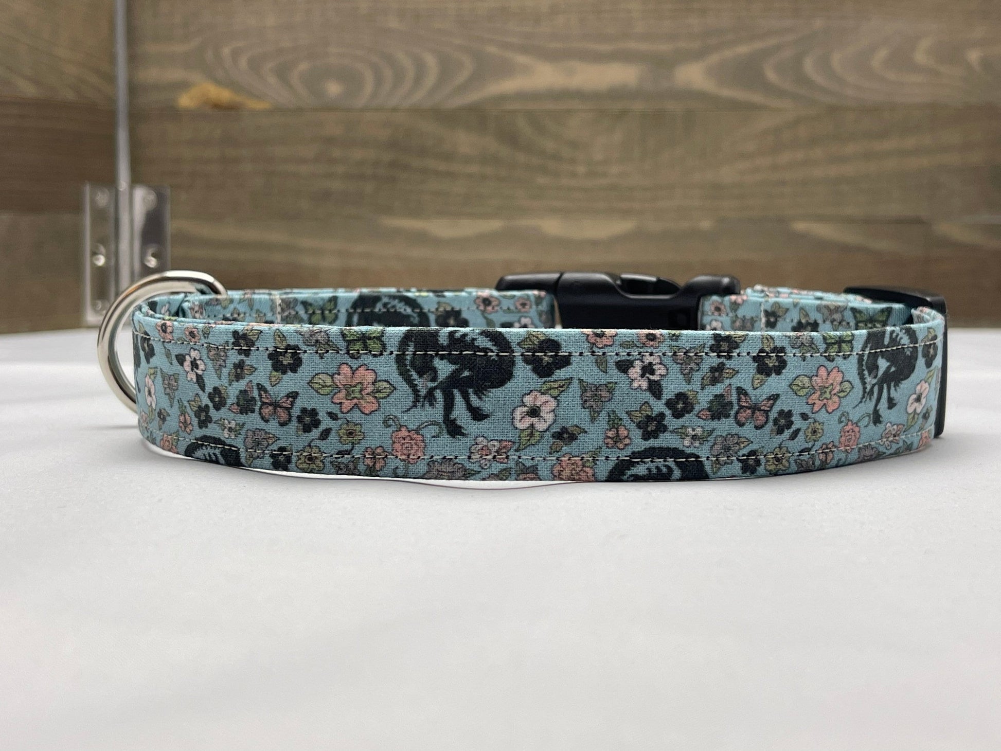 Alien Inspired Blue Floral Fabric Wrapped Dog Collar