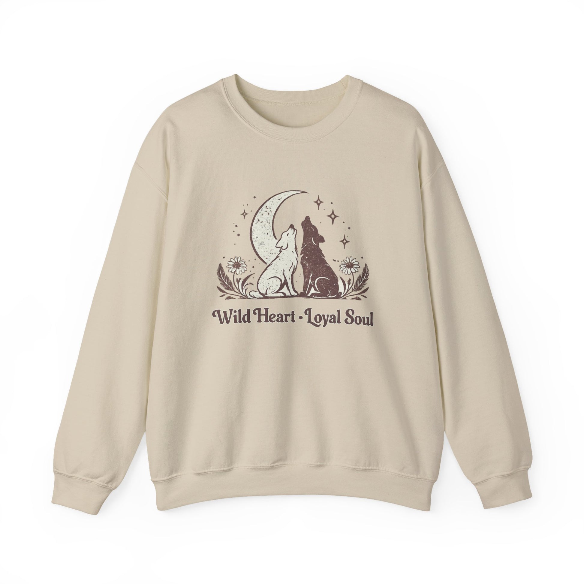 Wild Heart Loyal Soul Sweatshirt — Moonlit Howling Wolf Graphic Crewneck